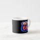 This white espresso cup with its image, on both sides, of a Route 66 red, white and blue neon sign on black, is an appropriate special touch, gift or favour for a 20s, 40s, and 60s decade party!