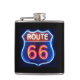This 6 oz. black vinyl-wrapped flask with its image of a Route 66 red, white and blue neon sign, is an appropriate favour or gift for a 20s, 40s, or 60s decade party!