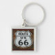 Photograph of a US Route 66 highway shield on a wood building. Photograph by Hans Braxmeier.
