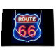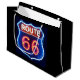 This large glossy black gift bag with its image, on both sides, of a Route 66 red, white and blue neon sign, is appropriate for a 20s, 40s, and 60s decade party! U.S. Route 66 (also known as the Will Rogers Highway after the humorist, and colloquially known as the "Main Street of America" or the "Mother Road") was a highway within the U.S. Highway System. One of the original U.S. highways, Route 66 was established in November 1926- with road signs erected the following year. It was recognised in popular culture by both a hit song originally recorded by the Nat King Cole Trio in 1946, and the Route 66 television show in the 1960s.