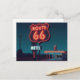 This vibrant digital illustration captures a classic Route 66 scene at night. A glowing neon Route 66 shield and bright motel sign stand out against a deep blue sky, with silhouetted hills and a lit road adding depth. Retro colors and geometric shapes evoke vintage Americana and nighttime road trip nostalgia. Perfect for fans of travel, neon art, and iconic American highways.