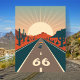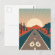 Capture the thrill of the open highway with this Route 66 USA vintage travel postcard, featuring a retro motorcycle cruising through bold geometric landscapes. Inspired by classic Americana and the freedom of road trips, this high-contrast design is perfect for motorcycle lovers, Route 66 enthusiasts, and fans of vintage-style travel art. Great as a collectable postcard, gift, or decor for wanderlust-driven souls.