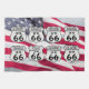 Red white and blue colours of the American flag accent the Route 66 state signs.