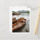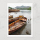 Wooden row boats line the foreshore of Derwentwater in the Lake District of Cumbria. Since Victorian times, visitors to the area have explored the lake by row boat.