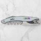 This corkscrew is pale blue with a row of colourful bright balloons with matching hanging streamers in colours of yellow, blue, orange, greeen, pink, and purple. Customise your name or text with the templates on the front and back.