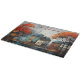 A whimsical watercolor of a row of houses in Autumn gives this cutting board a Fall aesthetic. Cutting boards are easy to switch out as seasons change, giving you a fun way to change your home decor. Name can be changed. AI assisted graphic purchased with commercial license. Artwork: RavenPrintableDesign