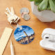 Painting of the canal with statues on square of Prato della Valle in Padova after sunset, Italy, after rain