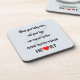 This is an item that I'd recommend for any special occasion or event. A memorable parting souvenir, after a spectacular time with family, friends or co-workers. Happily satisfied with the overall coaster: Bright Vibrant Colors; Accurate print & fonts as chosen; Sturdy material, which will last for a long time; Easy to clean with a wipe or two (don't intend on washing the bottom, which is cork)...