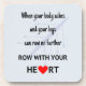 You have reached that moment when your legs are in agony, your body screams "Stop!" but your brain says: "No! The race isn't over yet!" That's the moment to dig deep and row from your heart. The inspirational text is in black with a red heart, and there is a pale blue background with the silhouette of a rowing eight.