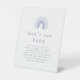 This boy rainbow don't say baby game baby shower pedestal sign from the Rowan Collection is perfect for a simple baby shower. This cute minimalist design features a unique light pale blue and white rainbow and is perfect for spring or summer.