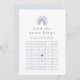 This boy rainbow find the guest bingo game card from the Rowan Collection is perfect for a simple baby shower or baby sprinkle. This cute minimalist design features a unique light pale blue and white rainbow and is perfect for spring or summer.