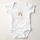 This girl boho rainbow pregnancy announcement baby bodysuit from the Rowan Collection is perfect for a simple baby shower and for baby announcement photos. This cute minimalist design features a unique neutral light blush pink and gold rainbow and is perfect for spring or summer.