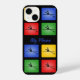 This phone case has a space for you to add a name or other text. The design features colourful icons (red, yellow, green, blue) with a rower in silhouette.