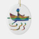 This interesting ornament features the image of a solitary rower with oars swishing through the water. It seems like a peaceful way to pass the time.