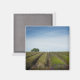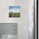 Souvenir magnet with rows of lavender plants after harvest of the flowers on Cotswold lavender industry in Snowshill, Cotswolds, England, UK.