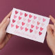 Custom Valentine's Day card featuring rows of pink painted hearts with "Happy Valentine's Day" in casual script typography.