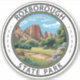 Roxborough State Park illustration in a badge style circle. Nestled in the foothills of the majestic Rocky Mountains, Roxborough State Park is a natural paradise just outside of Denver, Colorado. With its iconic red rock formations, tranquil trails, and diverse wildlife, it offers a serene escape where you can connect with nature and experience the awe-inspiring beauty of the Colorado wilderness.