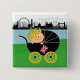 Rejoice! July 2013 welcomes the birth of a royal baby! Baby Cambridge, the first child of Prince William and Kate Middleton, whether a prince or a princess, will be third in line to the British throne. This button or pin makes a wonderful gift for all supporters of the Duke and Duchess of Cambridge and the Royal Family in general. The design features the royal baby on a carriage, with the London skyline in the background.