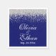 An elegant modern napkin with a silver glitter effect on a rich royal blue background. You can personalise it by clicking on the customise link. This is part of a beautiful matching wedding suite that can be fully personalised.