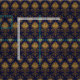 Royal blue and gold damask repetitive design.