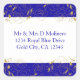 Personalised square address labels with elegant royal blue and gold floral design. The botanical design has delicate line art flowers and foliage in gold on royal blue borders with royal blue typography.