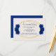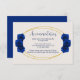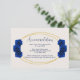 Elegant floral Quinceanera with royal blue roses, gold geometric frame and champagne ivory background
