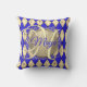 A stylish royal blue and gold harlequin diamond pattern as a backdrop with a glittery gold sphere with gold flourish where you can personalise it to make it uniquely your own. Glittery glam vibes.