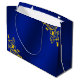 Elegant royal blue satin silk look with yellow golden floral embellished corners. Personalize by adding text to make it your own for your special occasion.