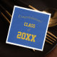 Add class to a graduation party with these paper napkins that feature school colours of royal blue and gold, with class year printed in gold colour lettering. Edit class year as desired. Select your paper napkin style.
