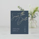 Royal Blue and Gold Script Wedding Save the Date Foil Invitation Postcard
