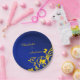 Elegant and simply but cost efficient and trendy personalised royal blue and yellow golden floral embellished wedding decor party plates.