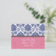 Royal Blue and PInk Damask Save The Date Announcement Postcard