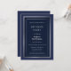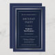 An elegant royal blue 30th birthday party invitation featuring a twin silver lined border.