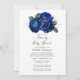 Royal Blue and Silver Floral Drive By Shower Invitation