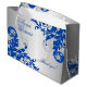 © 2019 Socialite Designs Inc. Beautiful corner swirls and flourishes gift bag with royal blue and silver-grey colours.