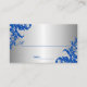 © 2018 Socialite Designs. Beautiful corner swirls and flourishes table card in royal blue and silver-grey, with a silver-look background. An elegant design for any time of year celebration. The design on the back was made available so that you can add additional information.