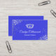Glam pageant coach business card done in royal blue, with silver tone flourishes and a silver and diamond crown. Personalise all the text for your pageant business.