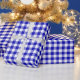 A wrapping paper designed with a royal blue and white check plaid pattern. Customise the white background among other options.