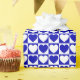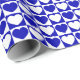 A wrapping paper built with a royal blue and white chequered pattern with hearts in large size. Customise the white background colour among several options.