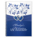 This personalised royal blue and white wedding planner notebook has a PRINTED ribbon and PRINTED FAUX glitter and diamond jewelled joined hearts on it that matches the wedding invitation shown below. Change the text to suit your needs.Email niteowlstudio@gmail.com if you need assistance.