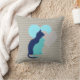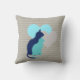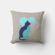 Two cat silhouettes, one aqua, the other royal blue, and two hearts of grey and aqua on a chevron striped grey background. This pretty cat design throw pillow is perfect for anyone who loves cats, looks great in the bedroom, living room, rec room, playroom!