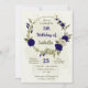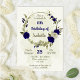 Royal blue beige flowers botanical birthday invitation