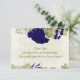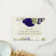 Beautiful romantic wedding thank you card featuring royal blue and beige flowers and some leaves .