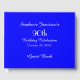 This Personalised Birthday Party Guest/Sign-In Book is decorated with a trendy royal blue and white colour scheme. Default says "90th Birthday", but it is easy to personalise name and age, just change or delete example text. Easy to change background colour on front, back and spine. All Rights Reserved © 2022 Alan & Marcia Socolik.