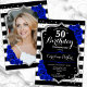 Royal Blue Black Silver Photo 50th Birthday Invitation