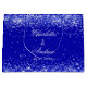A royal blue background decorated with confetti, sparkles. Personalise and the name of the bride and grooma and the wedding date.