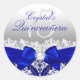 Royal Blue Quinceañera Sticker. Elegant blue and white damask design with pearl silk bow. Customise with your own details. Please note: All flat images. They do not have real bows, lace or jewels!
