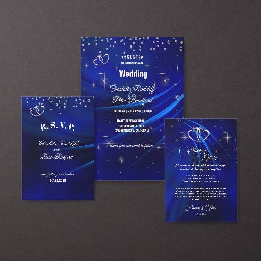 ROYAL BLUE, DIAMONDS AND HEART WEDDING SUITEDesigned by Carole Smith