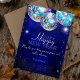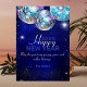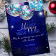 Royal blue faux glitter disco balls Happy New Year Holiday Card
