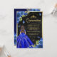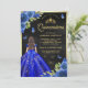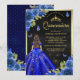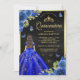 Royal Blue Floral Butterfly Black Gold Quinceanera Invitation